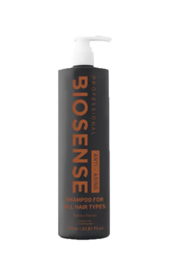 BioSense Anti-Aging Shampoo prevents hairloss, protects against free radicals and conditions.